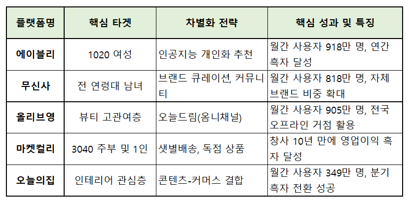 이는 생필품은 종합몰에서, 취향 상품은 전문 플랫폼에서 구매하는 '소비의 이원화'가 시장에 완전히 안착했음을 의미한다. 이제 소비자들은 단순히 물건을 사기 위해 접속하는 것이 아니라, 자신의 라이프스타일을 대변해 줄 플랫폼을 선택한다. 주요 버티컬 플랫폼들은 단순한 사용자 확보를 넘어 흑자 구조를 안착시키며 비즈니스 모델의 지속 가능성을 스스로 증명해 냈다.