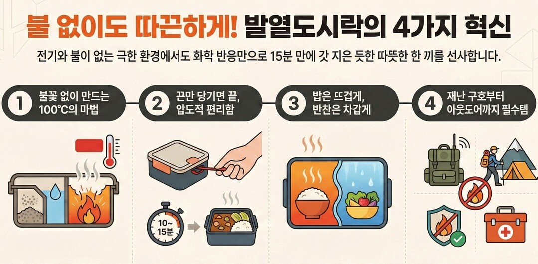동계올림픽이 남긴 유산은 메달만이 아니다. 극한의 환경에서 검증된 발열도시락 기술은 과학적 편리함과 환경적 책임이 균형을 이룰 때 진정한 혁신이 된다는 교훈을 남겼다. 군사 기술에서 시작해 올림픽을 거쳐 일상으로 스며드는 이 여정은, 기술이 인류의 삶을 어떻게 변화시키는지 보여주는 생생한 증거다.