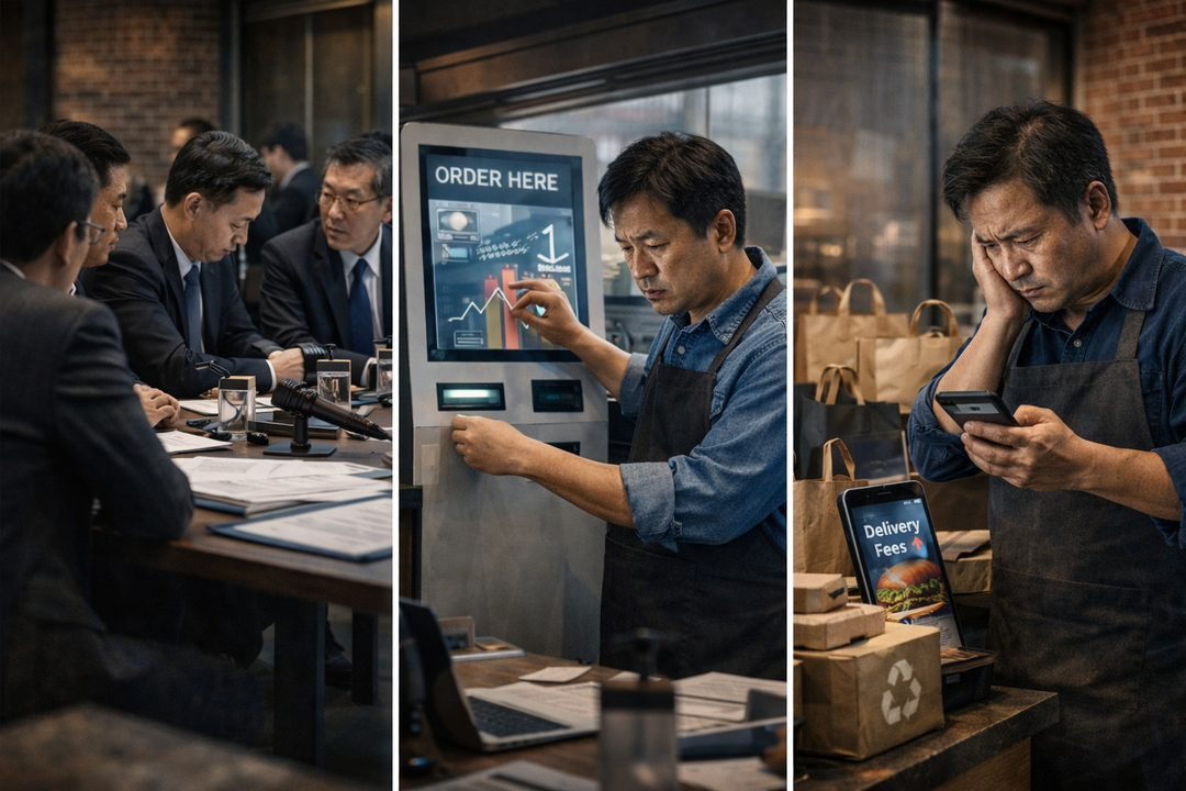 이 '인건비 쇼크'는 두 가지 거대한 흐름을 만들어냈다. 첫째는 점주들의 노동 시간 급증이다. 인력 고용을 최소화하기 위해 점주와 그 가족이 살인적인 노동 시간에 내몰리는 '생계형 자영업'의 그늘이 더욱 짙어졌다.